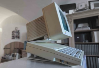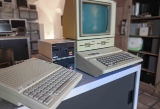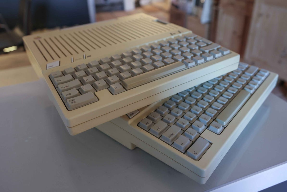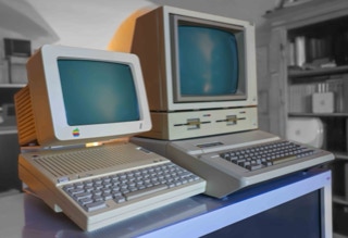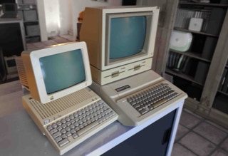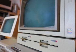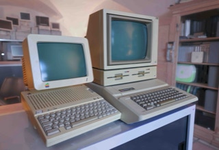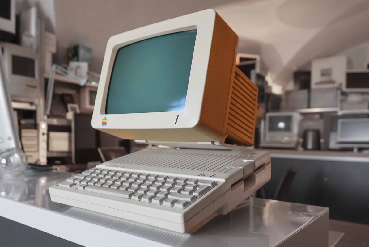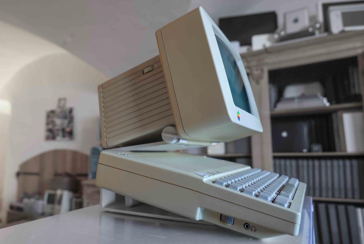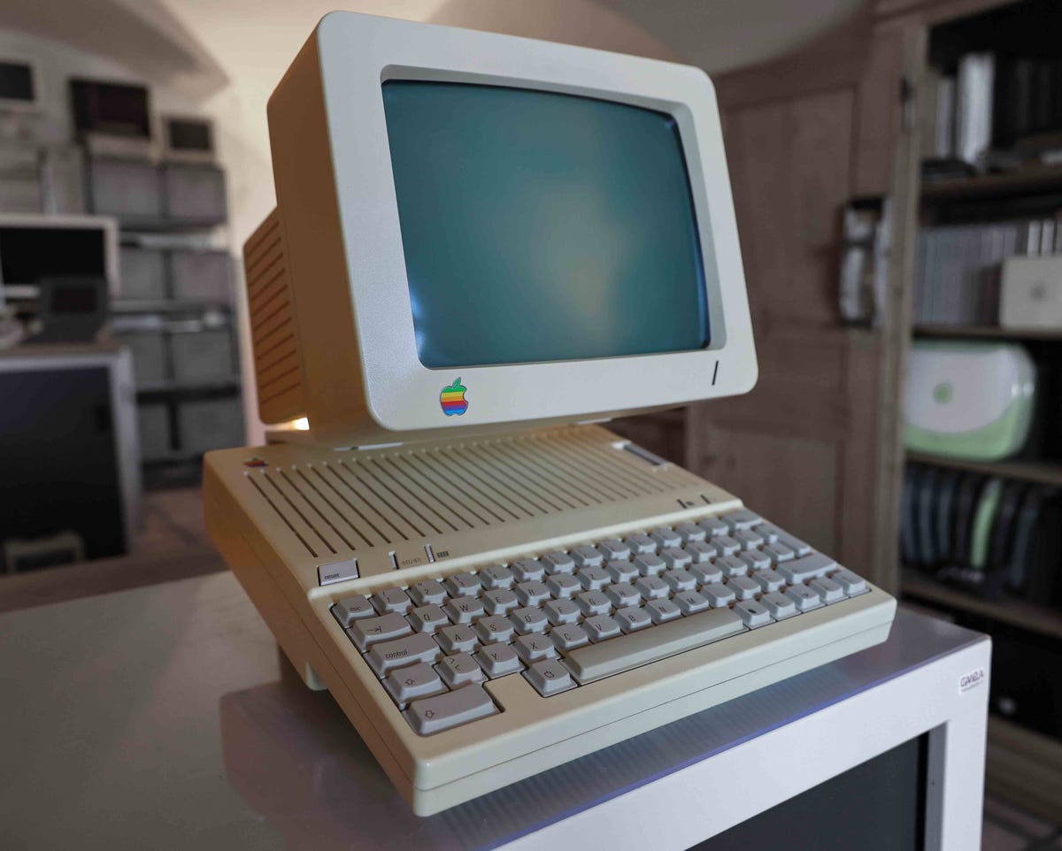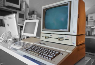 Apple released the apple IIc in april 1984, billing it as a portable apple II, because it could be easily carried, though unlike modern portables it lacked a built-in display and battery. The IIc even sported a carrying handle that folded down to prop the machine up into a typing position. The apple IIc featured a built-in 5.25-inch floppy drive and 128 KB RAM, with a built-in disk controller that could control external drives, composite video (NTSC or PAL), serial interfaces for modem and printer, and a port usable by either a joystick or mouse. Unlike previous apple II models, the IIc had no internal expansion slots at all, this being the means by which its compact size was attained. Third parties did eventually figure out how to wedge up to 1 MB of additional memory and a real-time clock into the machine, and a later revision of the motherboard provided an expansion slot that could accept an apple memory card bearing up to 1 MB of RAM. The disk port, originally intended for a second 5.25-inch floppy drive, eventually was able to interface to 3.5-inch disk drives and (via third parties) even hard disks.