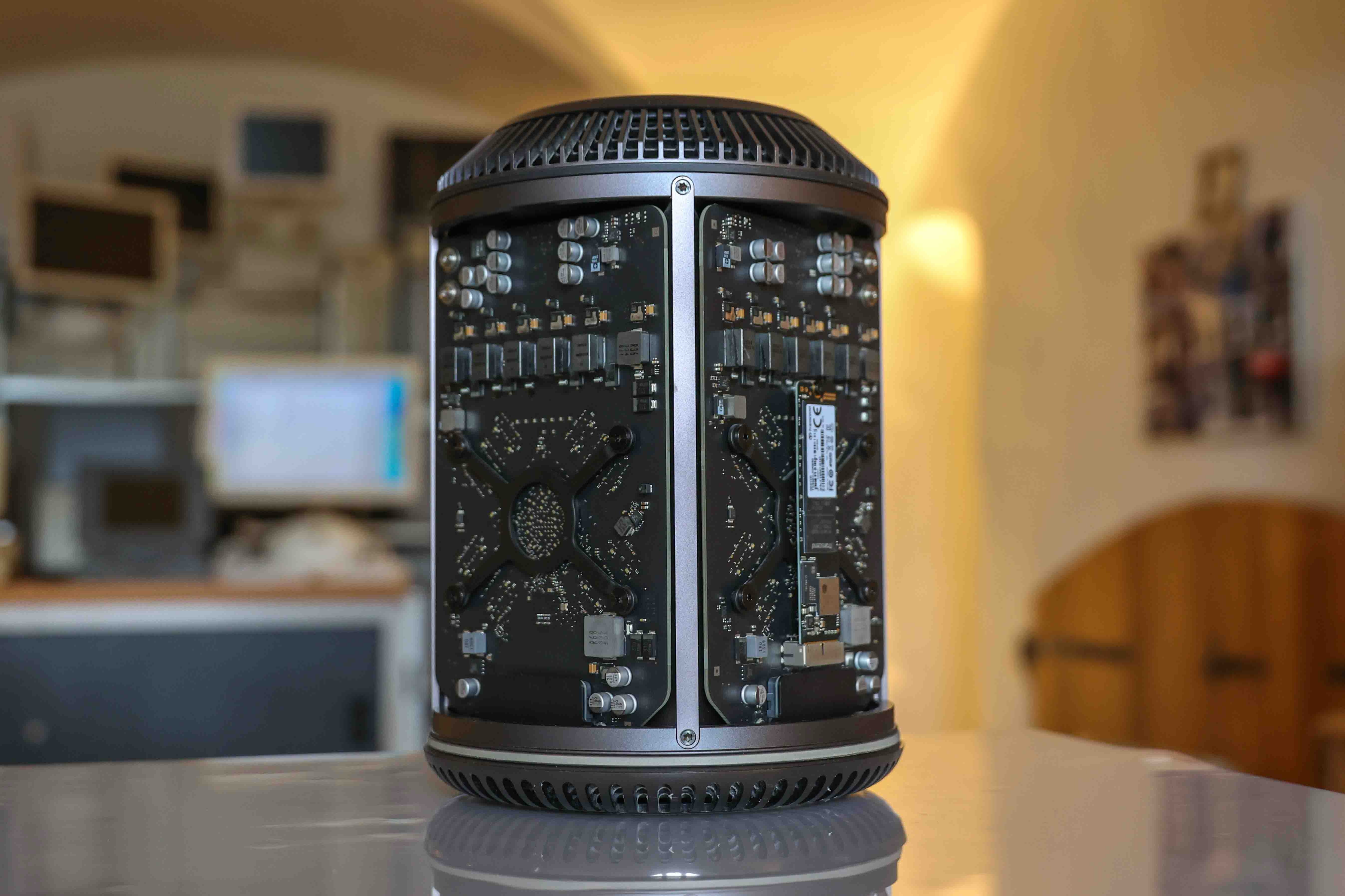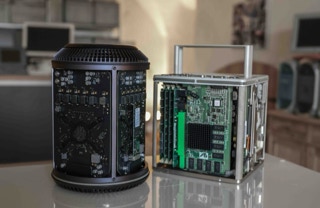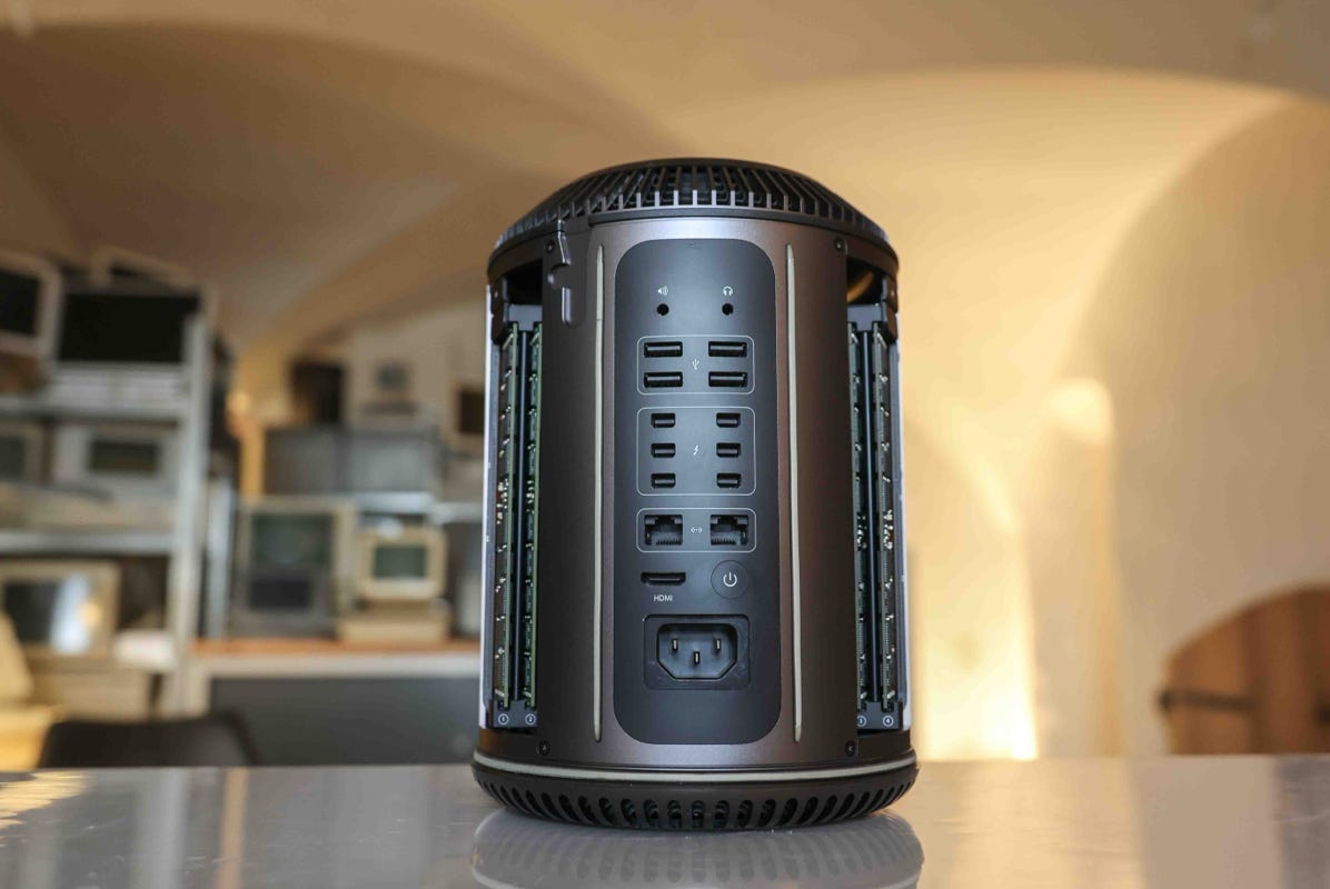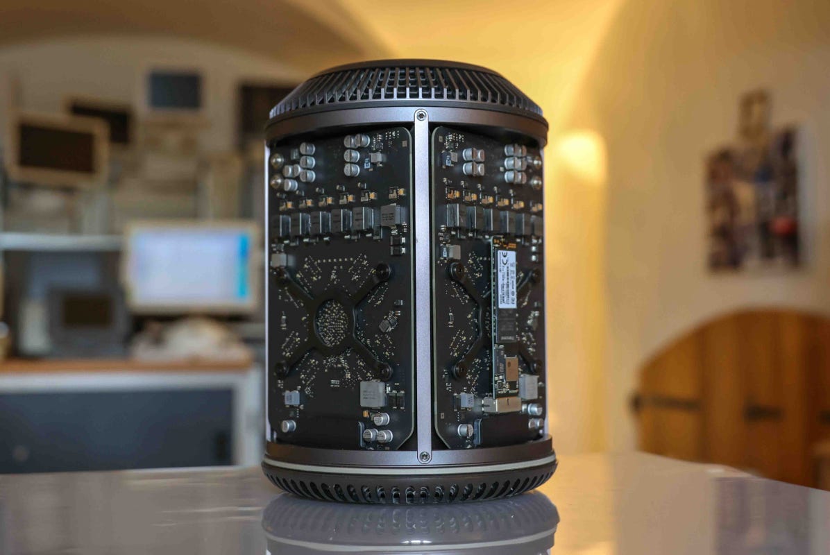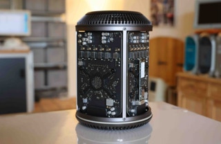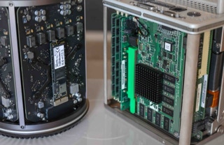 The new macpro removes the ability to replace hard drives by foregoing the four 3.5-inch drive bays for proprietary PCIe-channel flash storage. It also removes the ability to add PCIe cards internally, leaving the RAM as the only user-serviceable part. The I/O panel is illuminated when the unit senses it has been moved to make it easier for the user to see the ports.