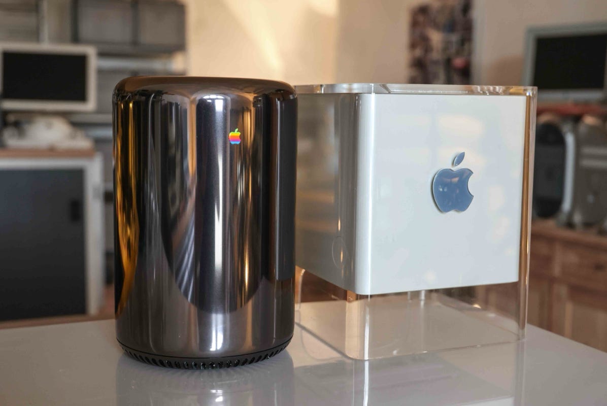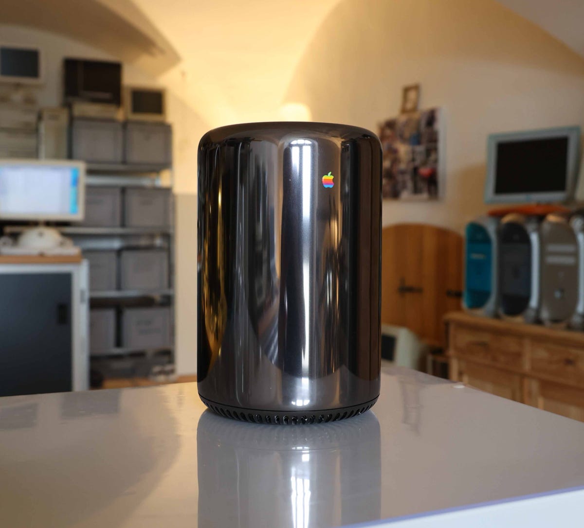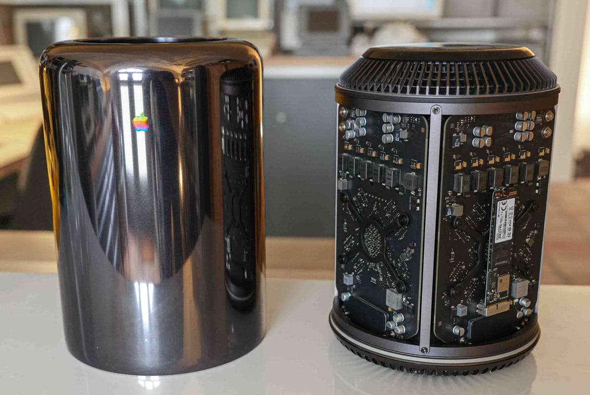 Apple unveiled a completely redesigned macpro during 2013. The macpro 2013 was revealed an overhauled case design, a polished silver aluminum cylinder built around a central thermal dissipation core and vented by a single fan, which pulls air from under the case, through the core, and out the top of the case.