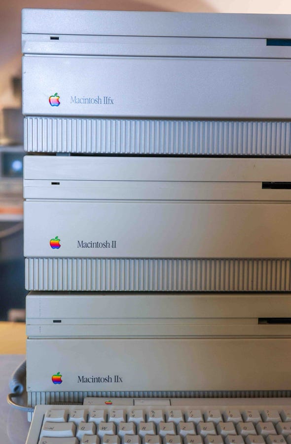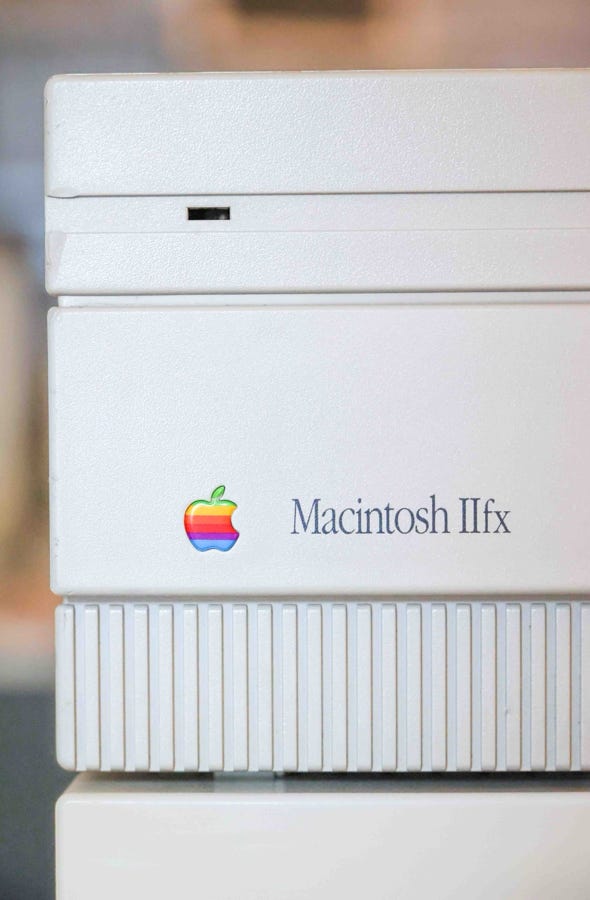 The mac IIfx was the fastest mac ever built at the time. The IIfx shipped in a mac II-style case, and could accommodate up to two super drives and internal SCSI hard disk. The IIfx also contained a number of proprietary ASICs designed to speed up the machine further. These required software written specifically for the IIfx to run at top speed, but either way it was an extremely powerful machine.