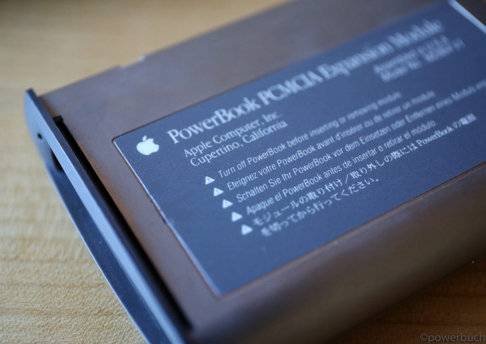 The 500 series is the first powerbook to include a drive bay, even though it doesn’t work in quite the same way as the bay in later powerbooks. The right battery compartment includes an internal PDS slot that allows small expansion modules to provide additional functionality. It is only as large as one of the batteries so it provides limited expansion capabilities. Apple sold a PCMCIA module for it, but it was unpopular because the 500 series already included the two features that were most commonly available as PCMCIA cards – ethernet and a modem. Sonnet also sold an expansion board that added an FPU to the 68LC040 CPU. It was nothing like the expansion bay introduced later with the powerbook 5300.