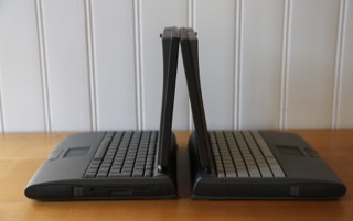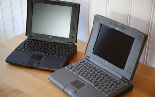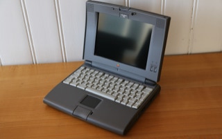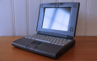 The 500 series consists of four models – the 520, the 520c, the 540, and the 540c. The 520 and 520c run on a 25 MHz 68LC040 CPU, and have a 9.5″ passive-matrix screens. The 520′s is grayscale and the 520c’s is capable of displaying 256 colors. The color screen uses dual scan technology which is better than the technology in the 520. The 540 bumps the CPU speed up to 33 MHz and provides an active-matrix grayscale display. It is slightly smaller at 9″. The 540c is the top end and adds a 16-bit active-matrix color display to the mix. All models shipped with 4 MB of RAM (still) and have hard drives ranging from 160 – 240 MB (520/520c) and 240 – 500 MB (540/540c) in size. The 520′s shipped with one battery and the 540′s shipped with two. Each battery lasts about 2.5 hours on a charge. All models include system 7.1.1 installed and can run up to Mac OS 8.1.