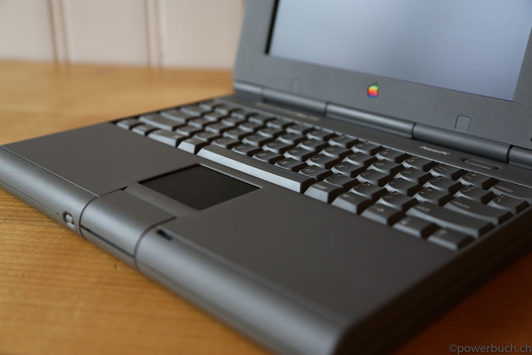 The duo series looks more modern than its cousins in the 100 series and looks similar to the later-design of the powerbook 100. Absent is much of the square multi level design of the 100 series. The top of the screen bezel is curved as is the front of the palm rest section. The keyboard is inline with the palm rests instead of on a higher level. The trackball is recessed in a slight dip in the middle of the palm rests along with its dual buttons. A small speaker is located in the corner of the screen and a microphone is located near the keyboard. Brightness sliders are replaced with buttons – a trend that would continue on future powerbooks.