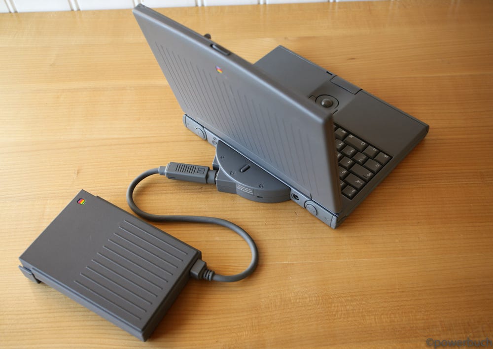 Despite their small stature, the duos introduce some features that are not even available on the highest-end powerbook 180 of the day. Features like a sturdy magnesium frame that double as a heat sink for the cpu, a caps lock key that illuminates when active, and a power button located on the front of the machine above the keyboard instead of the back are just a few. The duos can hold up to 24 mb of memory (10 more than the 180), use standard ram chips that make memory upgrades cheaper, and support user installation of memory which saved users a trip to apple to upgrade their memory. The duos also use the newer and more powerful nickel metal hydride (nimh) batteries, used by pc competitors, due to their higher power density (more power in less space) and shorter charging times. The duos are also the first powerbooks that automatically go to sleep when the lid is closed and allow the user to swap out batteries when not plugged in without losing date. To enable owners to install software and backup data, apple sold a variety of docks that could provide additional functionality, including additional hard drives, the ability to connect to a larger color monitor, and even the ability to install the same nubus expansion cards used on desktop macs. The full-sized dock, called the duo dock, included room for an internal hard drive, two nubus cards, a built-in floppy drive, and a host of ports including scsi, adb, and sound in/out. It also provides the ability to display up to 16-bit color on an external monitor. In a duo dock, which cost about $1,000, the duo was shut down, closed, and placed into a slot in the dock that sucked it in like a videocassette (or cd for you kids). While the duo is in the dock you cannot access its screen, keyboard, trackball, or ports, but can access the internal hard drive. When the eject button is pushed, the dock sends a message to the duo that asks it to close all documents and shut down – ensuring that the user doesn’t undock unsafely. For users who didn’t want to shell out the money for an entire dock, apple sold a mini dock ($590) which only included the ports of the duo dock and 8-bit color video output. For minimalists there was also a floppy adapter that provided a floppy port and an adb port for $135. You also had to purchase the floppy drive (the same on sold for the powerbook 100) for $199. Failing to include any sort of floppy port on the duo made it inconvenient for users to add a floppy drive as they had to purchase both the drive and the adapter. Third parties also sold various docks that included floppy, scsi, and other additional ports.