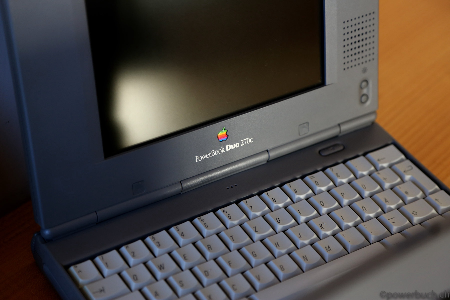 In october 1993, the duos were replaced with new models, the duo 250 ($2,500) and the duo 270c ($3,100). The big story here is the inclusion of crisp, fast active-matrix displays and the addition of color to the 270c. The 250 is exactly the same as the prior year’s 230 but it has an active-matrix grayscale display instead of a passive matrix one. It’s brighter, faster, and easier to read. The 270c is the first duo with a color screen and apple decided not to skimp out on this one like they did with the 165c earlier in the year. The 270c includes an active-matrix display capable of displaying thousands of color, which was not only a first for the duo and the powerbook, but a first for a laptop, pcs included. The screen measures 8.4″, about half an inch smaller than other duos, and in order to get thousands of colors it can only display 640 x 400 pixels with black bands at the top and bottom of the display. Full 640 x 480 resolution is available in 256 color mode. The 270c also includes a math coprocessor and 160 mb hard drive. The color screen cost an additional quarter-inch in thickness and half pound in weight, but still eeks out 2 hours of life from its battery, double the run time of the 180c released earlier in the year. This is due to a more powerful type ii nimh battery. Both models include a 33 mhz 68030 cpu and 4 mb of ram and the 270c has a higher maximum ram ceiling of 32 mb.