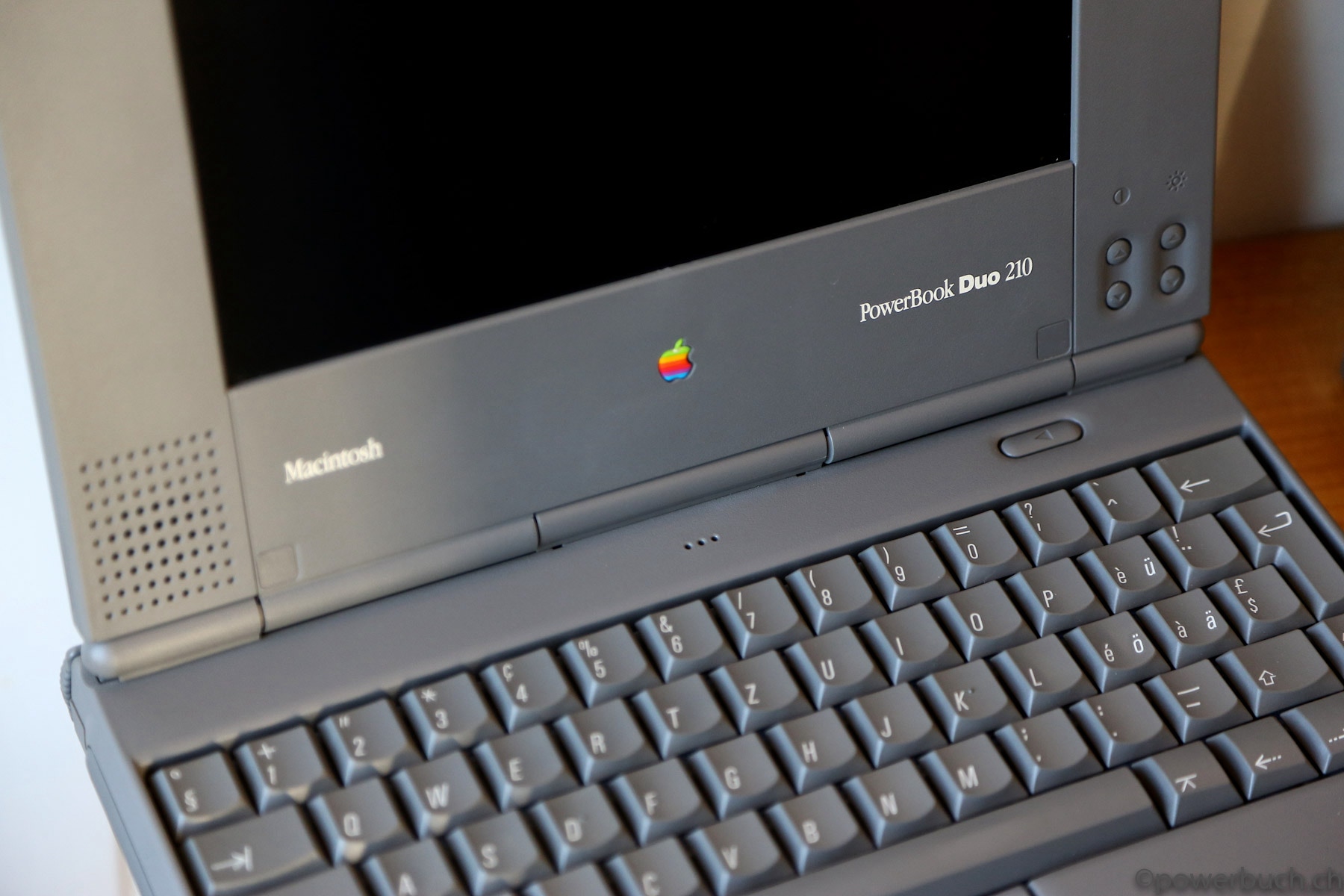 The first duo models were introduced in october 1992 alongside the powerbook 180. The low-end duo 210 includes a 25 mhz 68030 cpu, 4 mb of ram, an 80 mb hard drive, a 9” passive-matrix display capable of displaying 16 shades of gray and sold for $2,250. The high-end duo 230 is the same as the 210 with a faster 33 mhz 68030 cpu and an optional larger 160 mb hard drive for $2,610. Both have batteries that last about two hours on a charge. In comparison to the powerbook 100s of the time, the duos are noticeably smaller – 38% thinner (1.4″ vs 2.25″), 38% lighter (4.2 vs 6.8 lbs), and slightly narrower and shallower. The cost of this weight savings is the lack of expansion ports, lack of a floppy drive, smaller and softer keyboard, smaller trackpad, and smaller passive-matrix display.